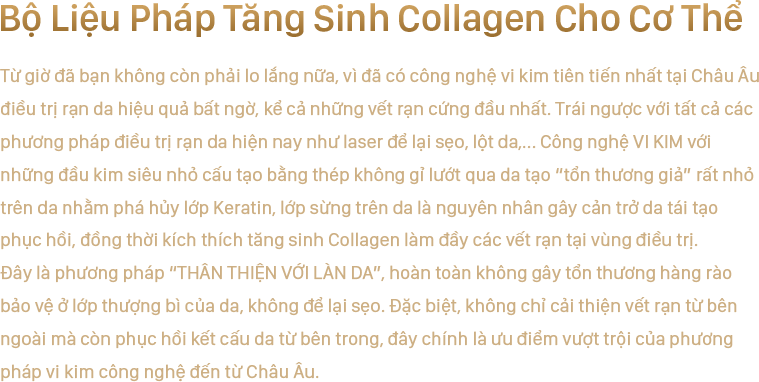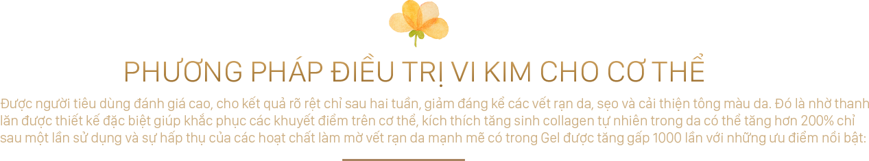 Được biết đến công nghệ Vi Kim Xóa Rạn Da đến từ Châu Âu không dùng laser, không để lại sẹo nên tôi quyết định thử ngay phương pháp này. Thật bất ngờ, chỉ sau vài lần điều trị, vùng da của tôi đã được tái tạo mới hoàn toàn, vùng rạn đã mờ đi, da cũng mịn màng hơn rất nhiều, quan trọng hơn đó là không tạo sẹo. Đây là điều mà tôi thấy chưa có phương pháp nào làm được.”